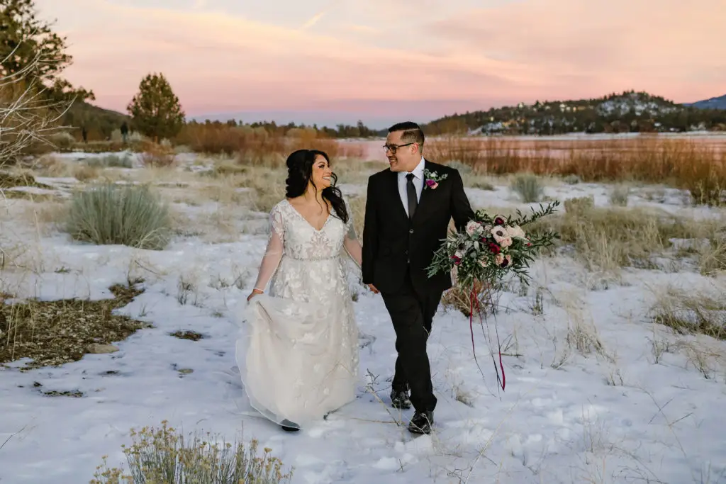 I’m a hiker and my elopements are designed with the “pack in, pack out” mentality, meaning we carry in and carry out whatever we bring, leaving nothing but footprints and taking nothing but photos. Because we literally go into places as beautifully dressed hikers. It is deeply important to me that we respect the land while making your elopement experience stress-free and awesome. That’s why I’ve designed my Big Bear elopement packages this way – so they are fun, joyful, and relaxed because you don’t have to worry about anything!